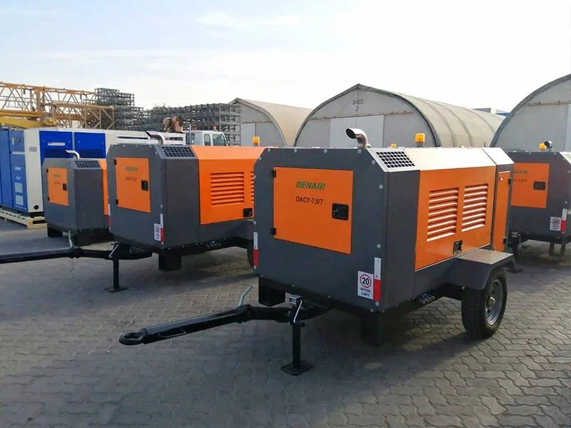 Переносные винтовые воздушные компрессоры Denair широко используются во всех видах тяжелых условий эксплуатации. Они востребованы в таких отраслях, такие как горнодобывающая промышленность, гидроэнергетика, добыча нефти и газа, скважина, верфь, строительство, химическая промышленность, карьер, пескоструйная обработка, опрессовка трубопровода, общественные работы, и т.д.